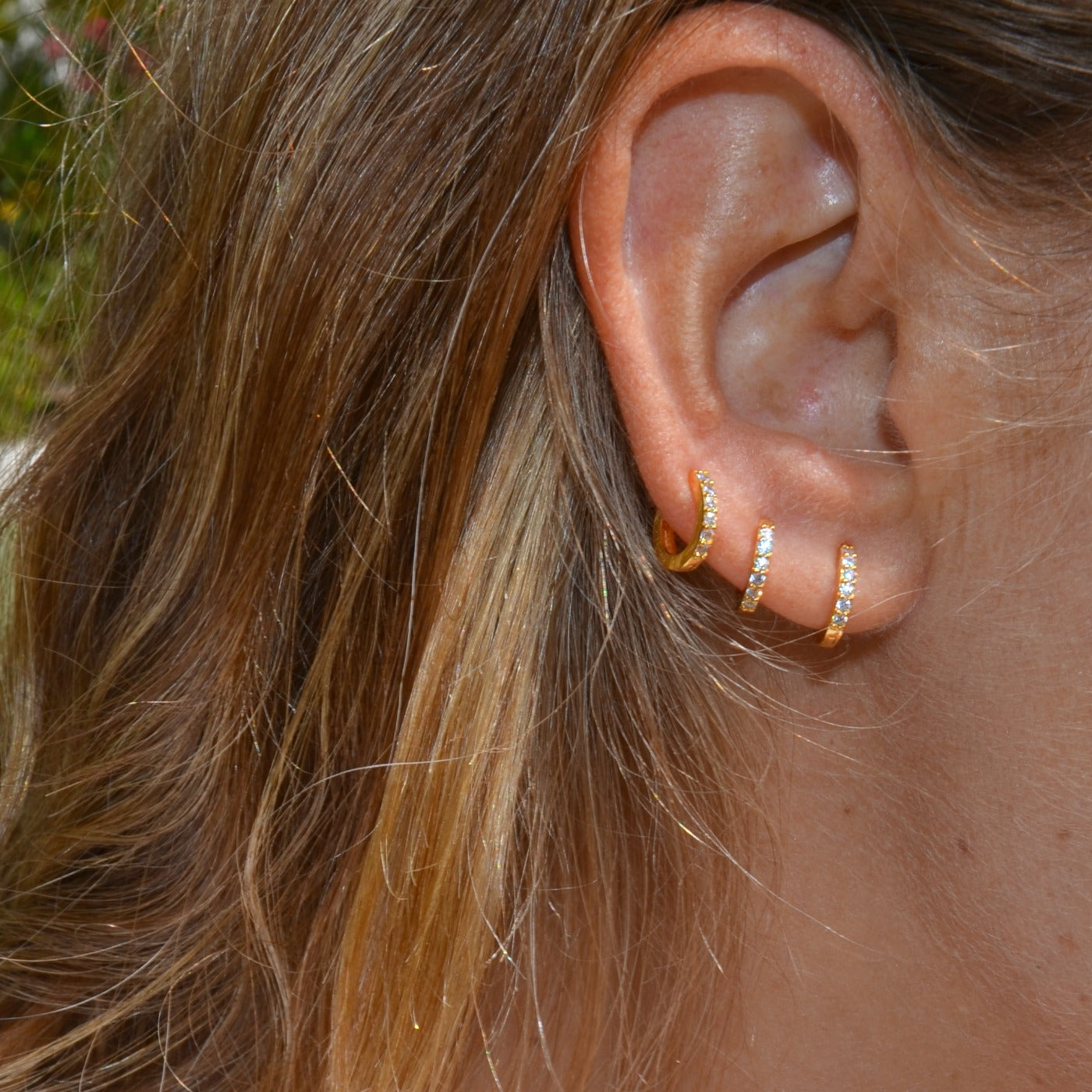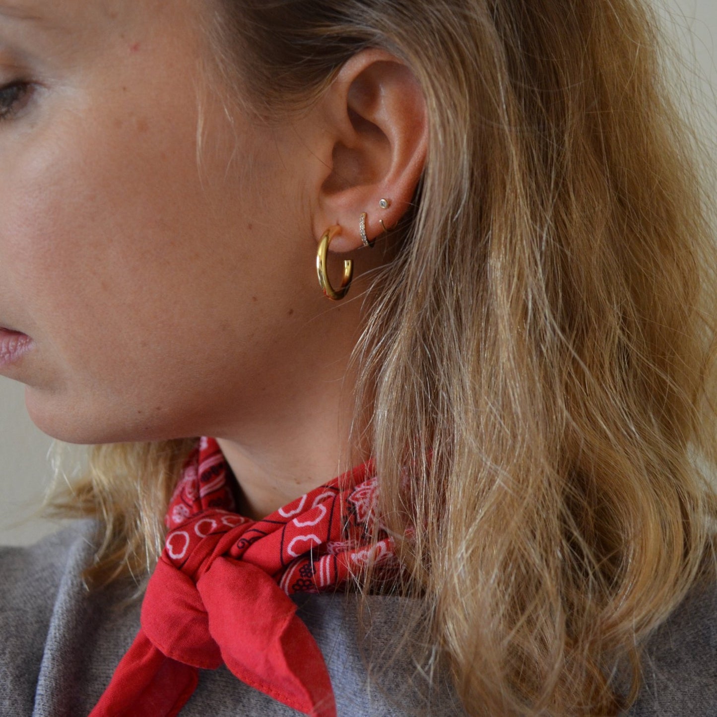 These small hoops are a basic, comfortable and instantly flattering because they bring light to the face . They also go great with all of our earrings and earrings , in case you have several holes and want to make a mix.