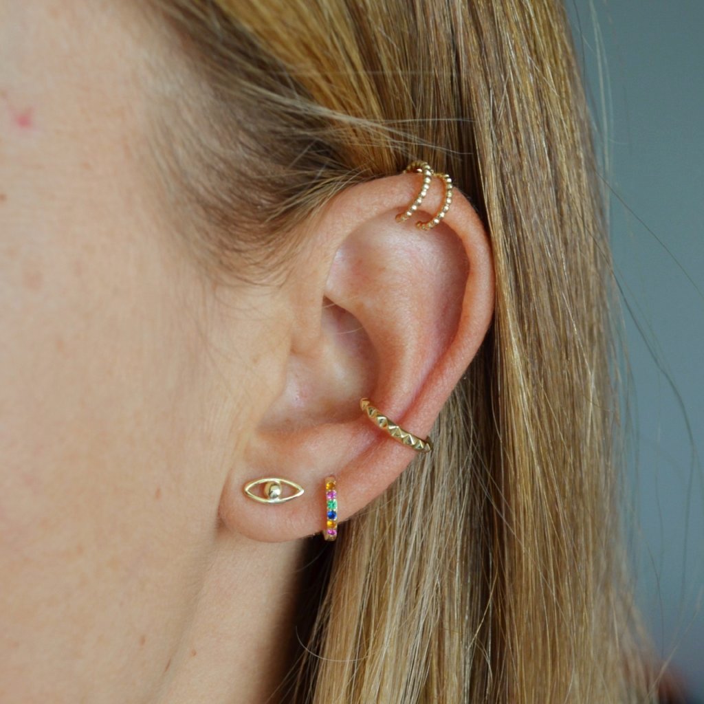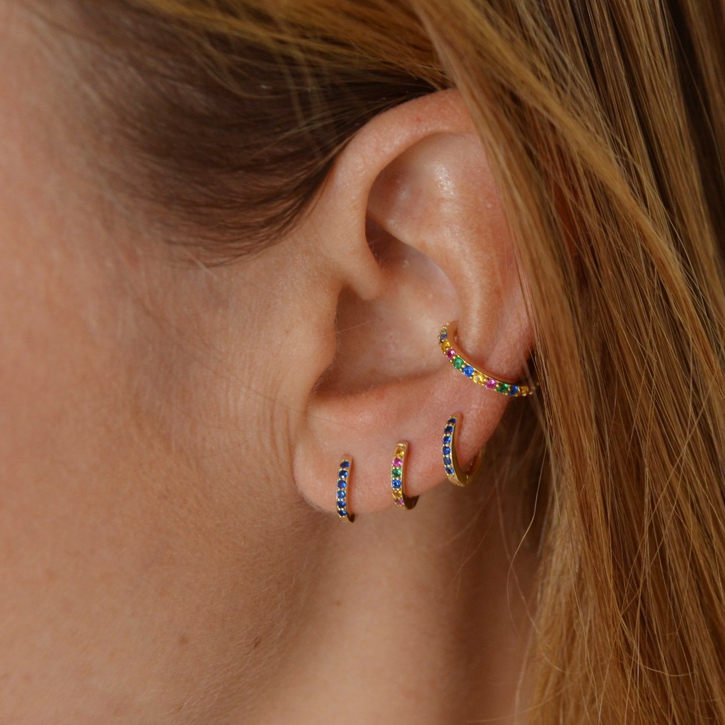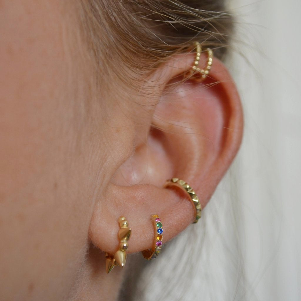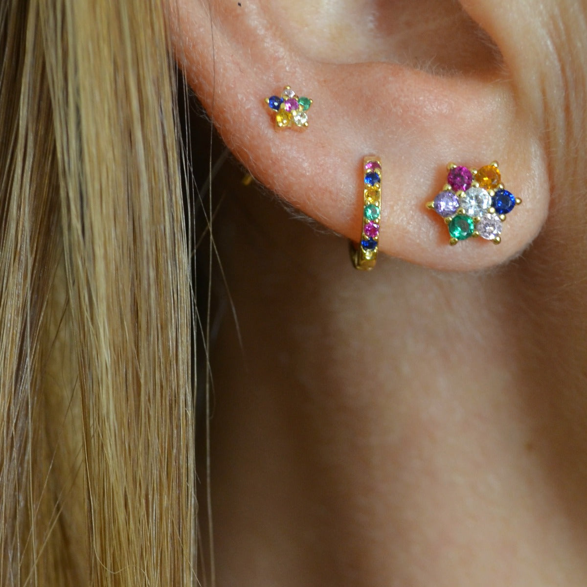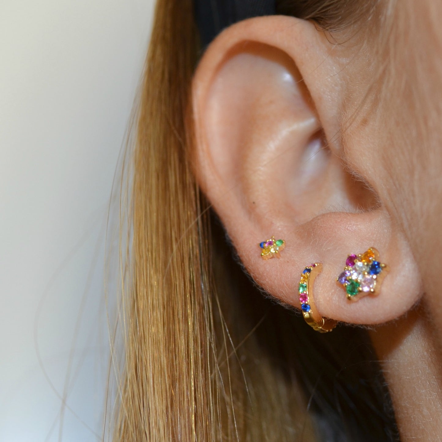 **This model is the little brother of the Medium Rainbow earrings , if you have a chubby earlobe or the first hole is very high, we recommend that you choose the Medium ones , since they measure 3 mm more in diameter than this model.**