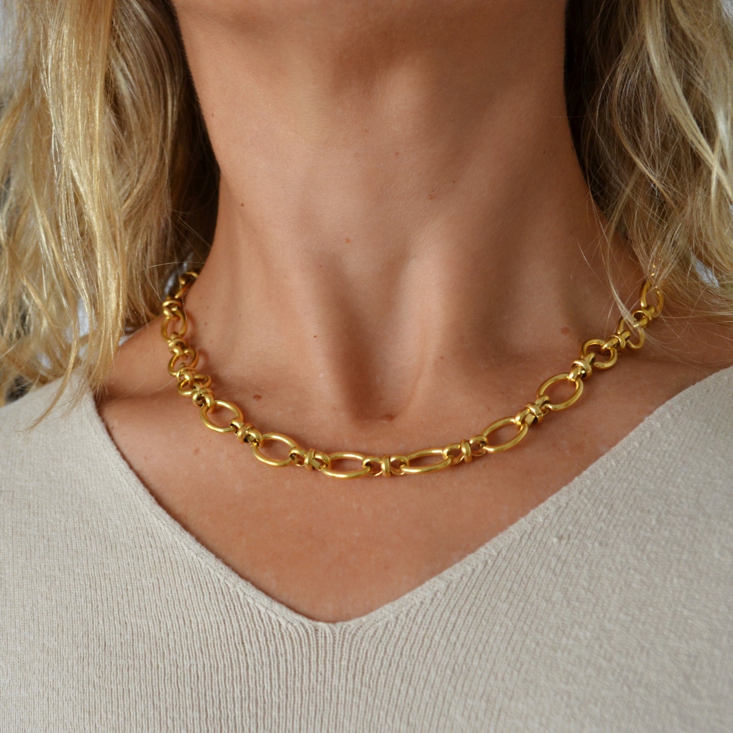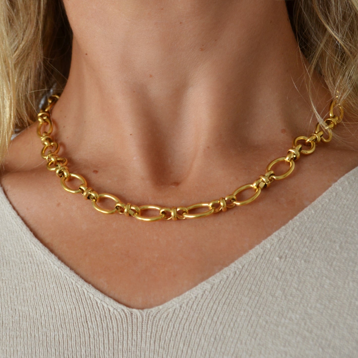 Un tendencia al alza son los collares gruesos de eslabones estilo 80´s-90´s, que te levantan cualquier look por sí solos.