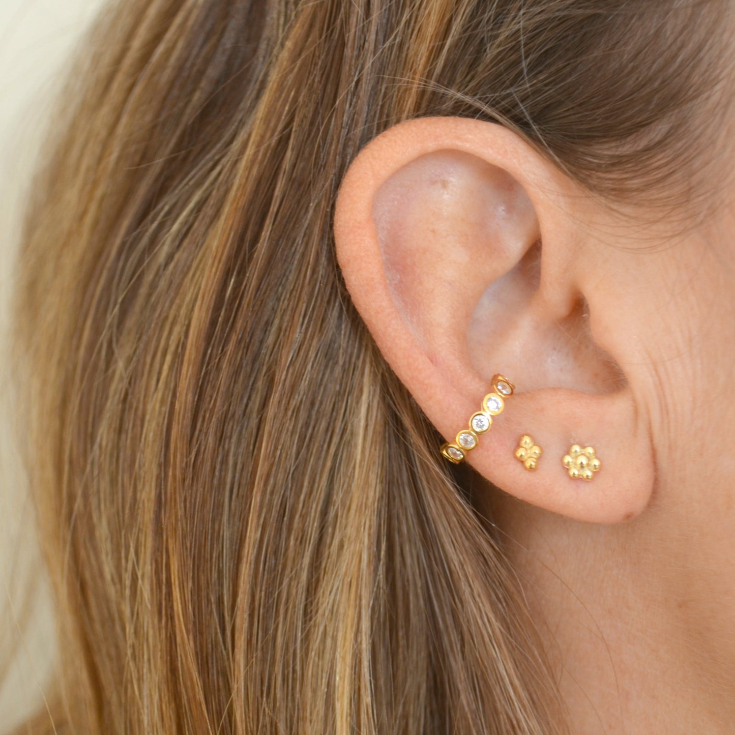Los ear cuff con circonitas deben permanecer en su diámetro original y no han de ser manipulados (abrir/cerrar) para mantener el correcto engarce de las piedrecitas.
