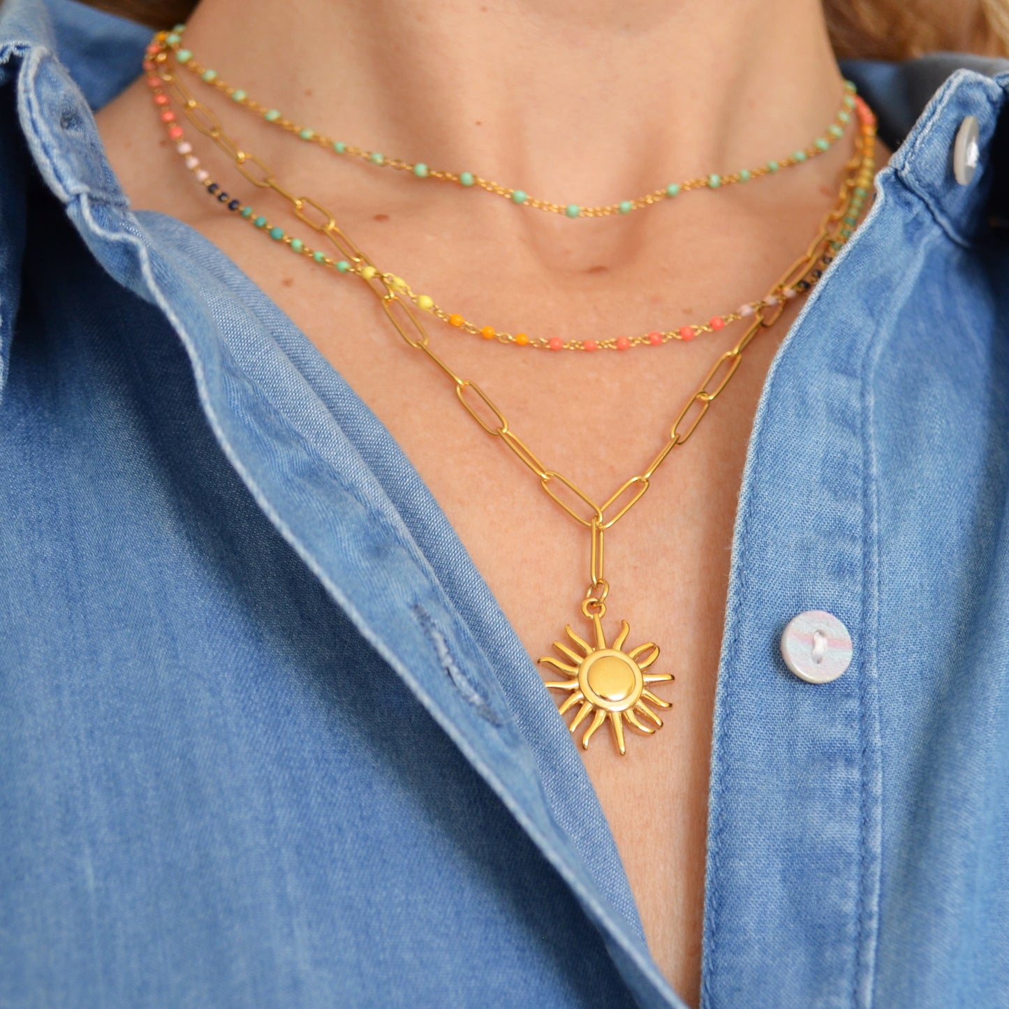 El collar me encanta!!! Pensaba que solo lo usaria en verano pero desde q lo tengo no me lo he quitado, estoy encantada!!!!🥰