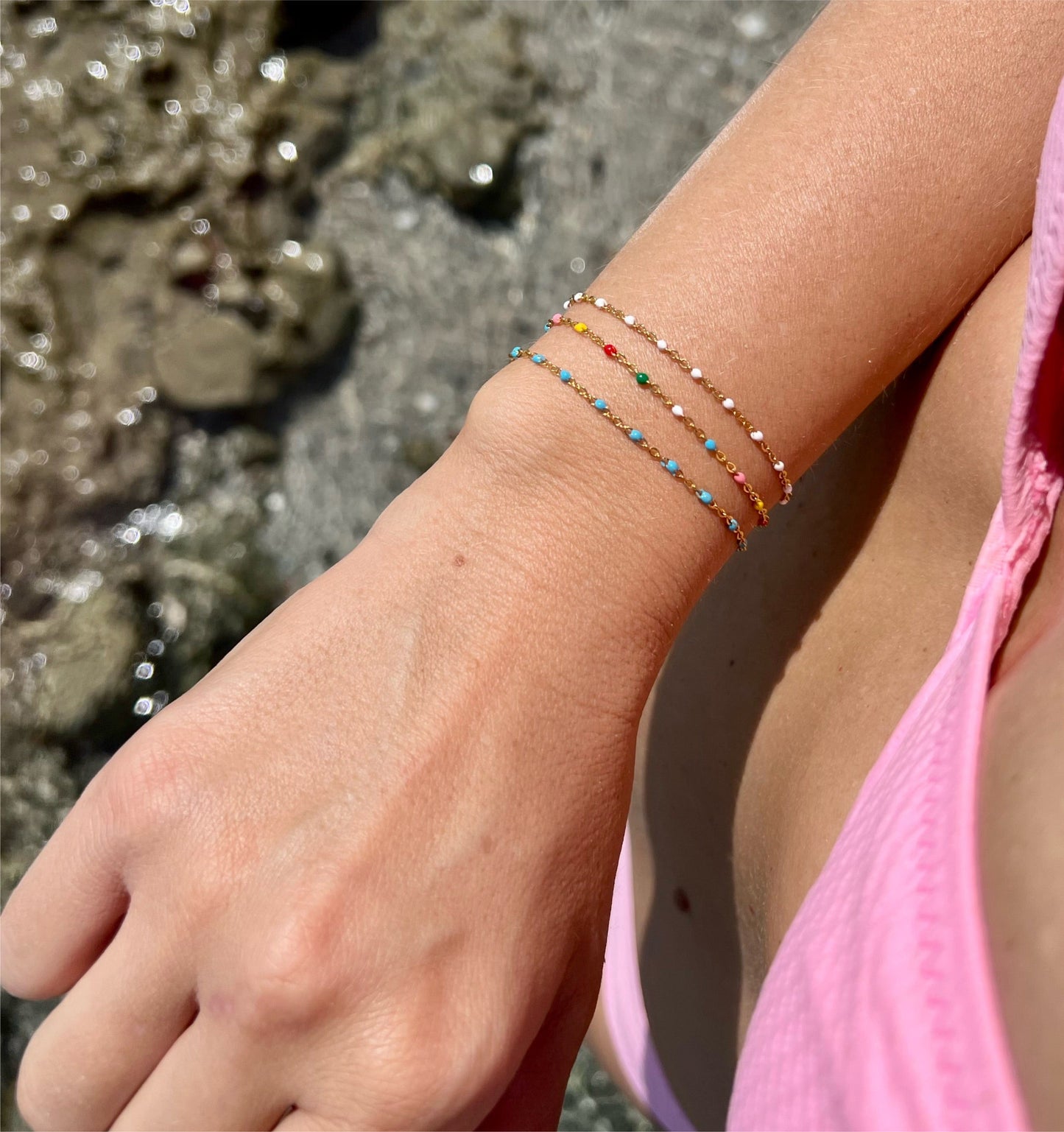 El espíritu veraniego comienza por llenar las muñecas de pulseras coloridas que resalten el moreno y compraros alguna que llevéis igual todas las amigas 🧡💚💛. ¿Ya tenéis vuestra pulsera del verano?
