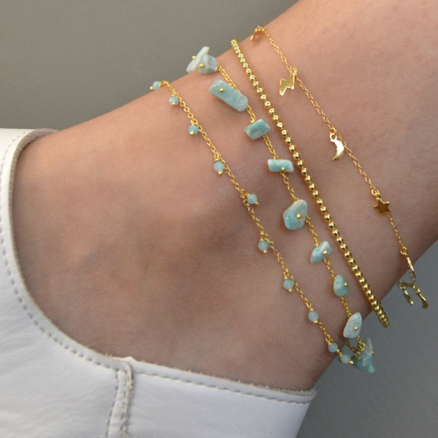 El espíritu veraniego comienza por llevar una tobillera, casi sientes que estás de vacaciones 🌞👙🍹, te ves las piernas más morenas y las sandalias sientan mejor. Si además quieres crear tu mix único, prueba a mezclar varias tobilleras de esta colección o con alguna de abalorios.